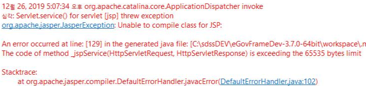 The Code of method_jspService is exceeding the 65535 bytes limit