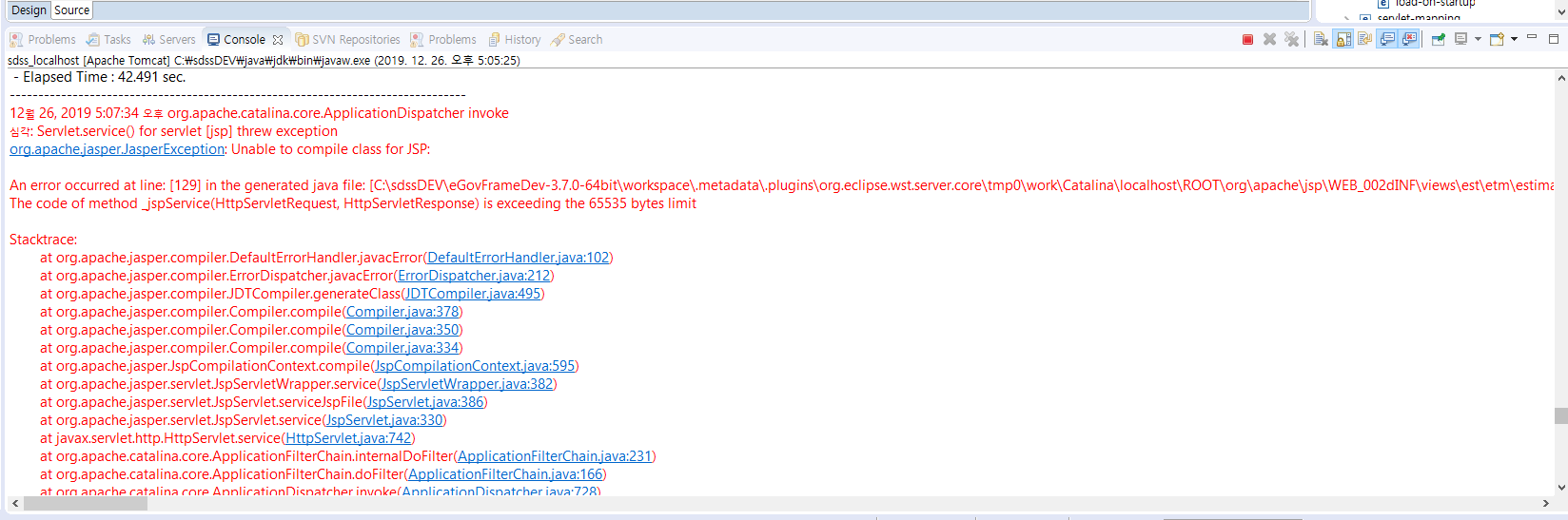 이클립스에서 jsp 파일 관련 작업 중 다음과 같은 에러가 발생했다.