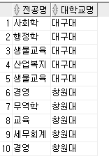 질의) 학력정보 테이블에서 대학명이 대구대인 사람의 정보와 창원대인 사람의 결과를 UNION ALL