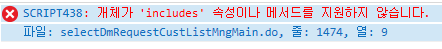 <SCRIPT438: 개체가 'includes' 속성이나 메서드를 지원하지 않습니다.>