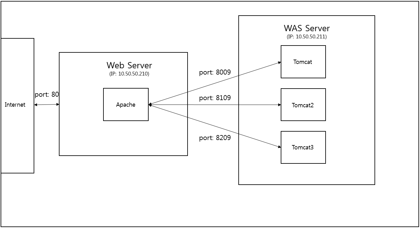 이에, 위와 같은 구성도로 Tomcat 인스턴스를 삼중화 하는 설정 방법을 정리한다.