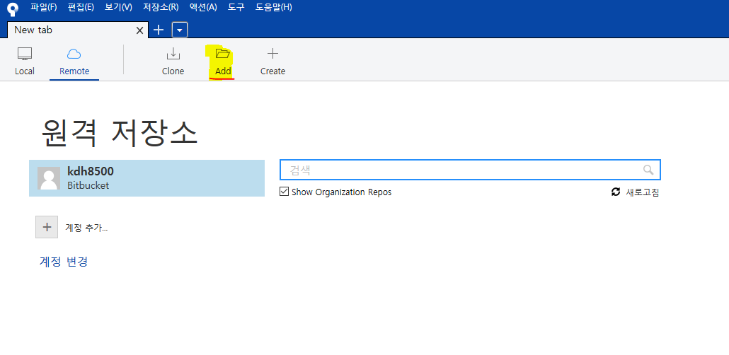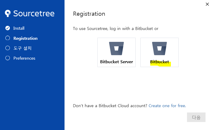 (1)등록 선택 - Bitbucket