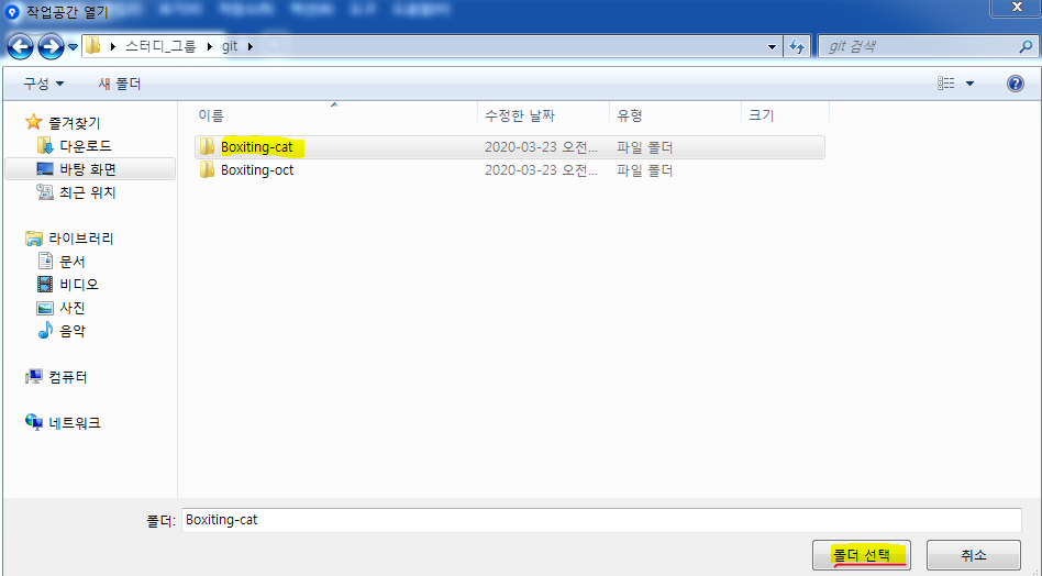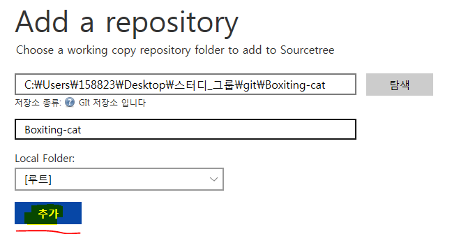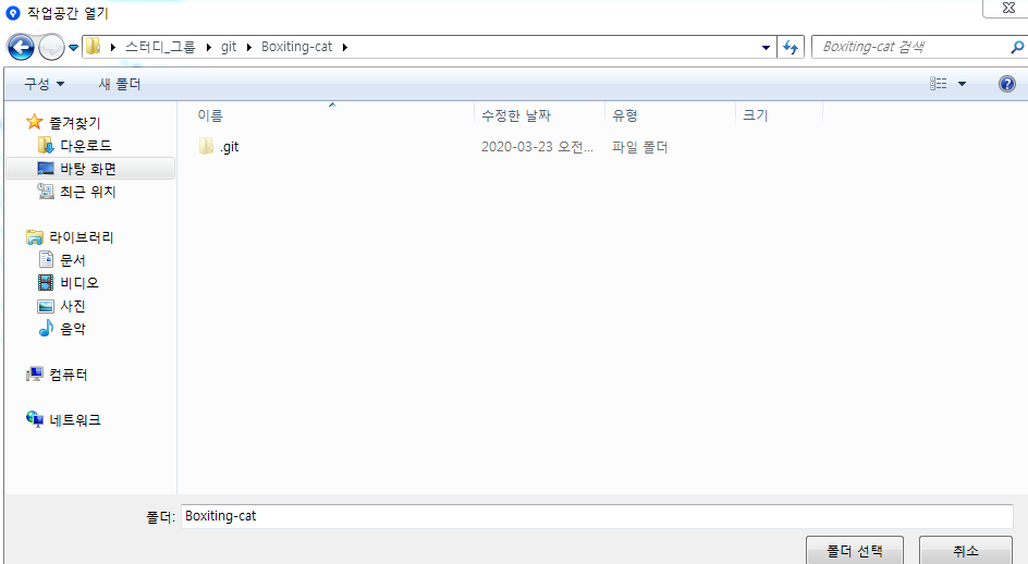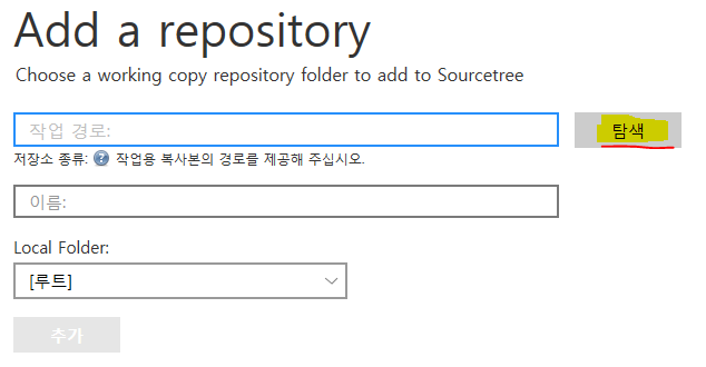 (2)탐색 눌러 폴더 경로 찾기 (.git 파일이 있는 폴더 선택)