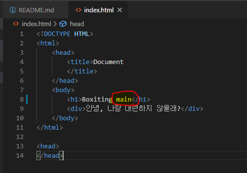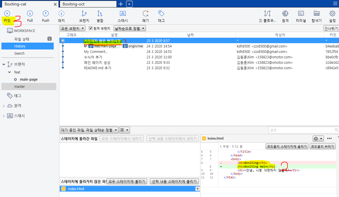 -커밋을 하기 위해, 소스 코드 수정 (당연히 Boxiting-cat 저장소에 있는 소스 파일 수정)
