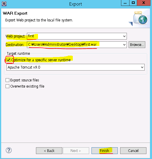 -Target rutime에서 [Optimize for a specific server runtime] 체크