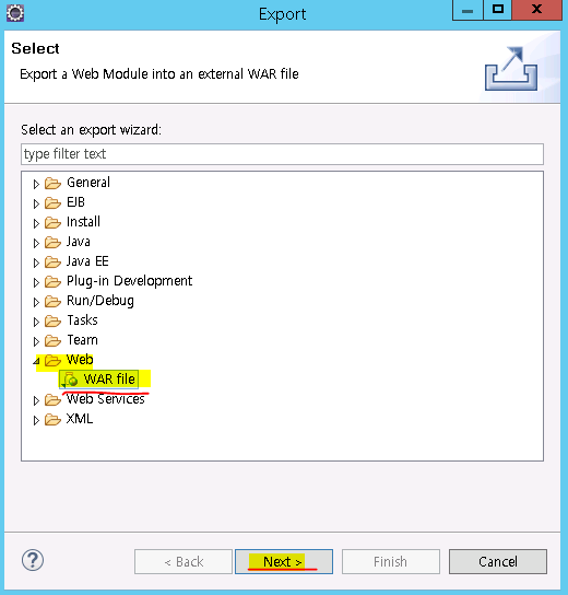 -[Web] - [WAR file] -[Next]