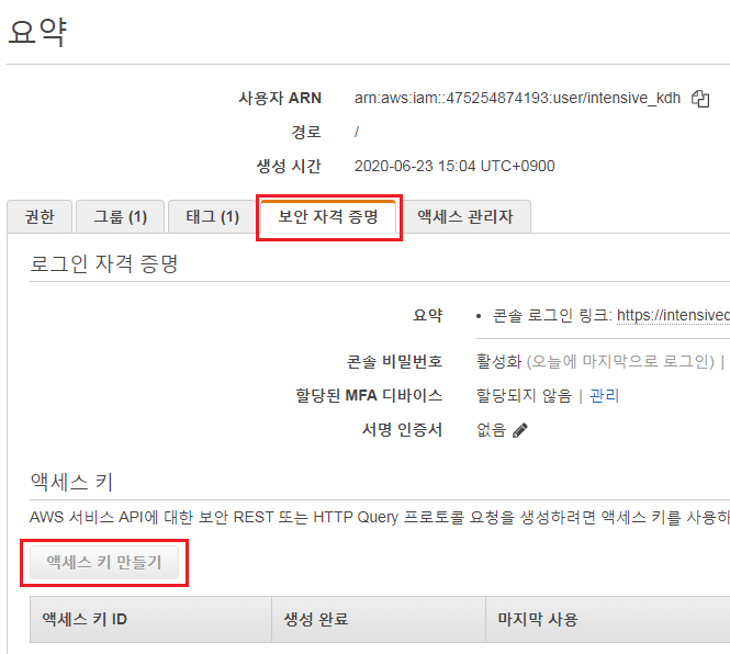 액세스 키 만들기