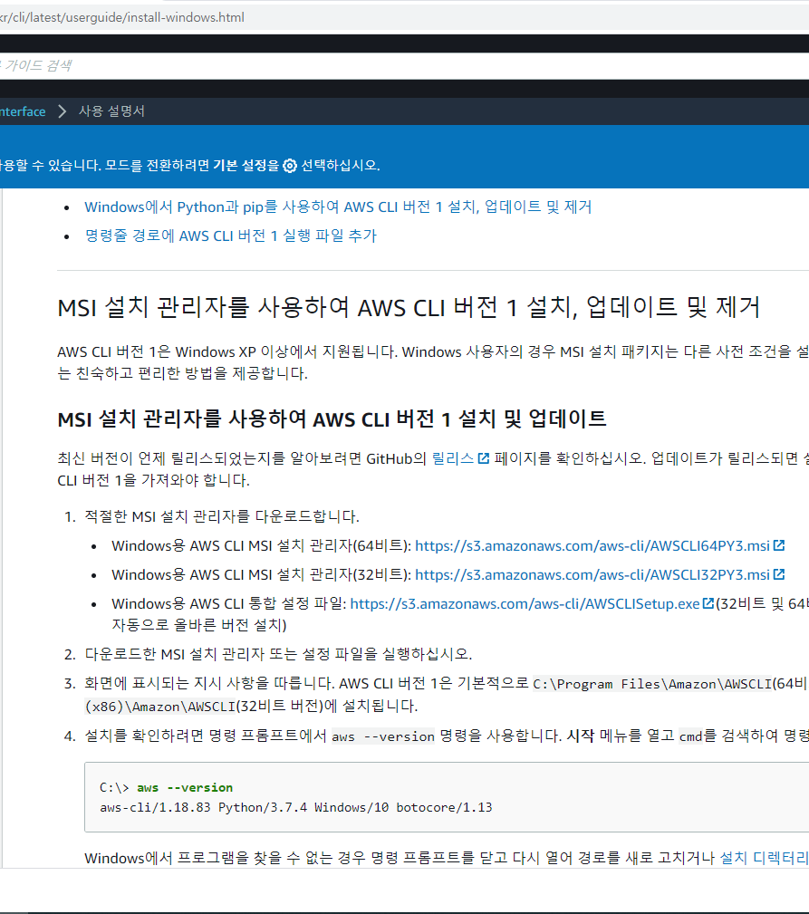 docs.aws.amazon.com/ko_kr/cli/latest/userguide/install-windows.html