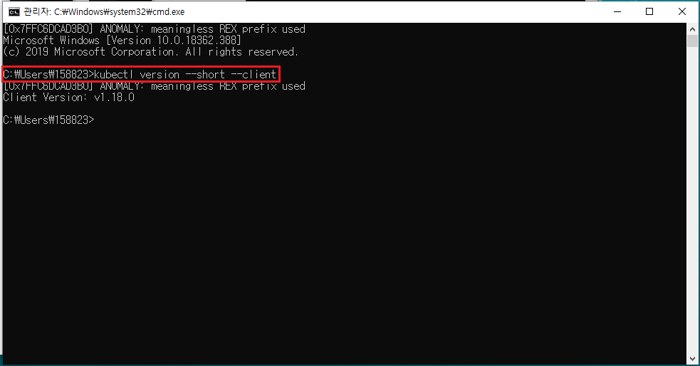 cmd에서 kubectl version --short --client 명령어를 수행해 본다.