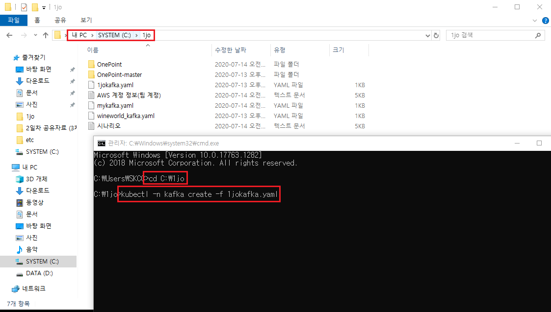 ex) kubectl -n kafka create -f 1jokafka.yaml