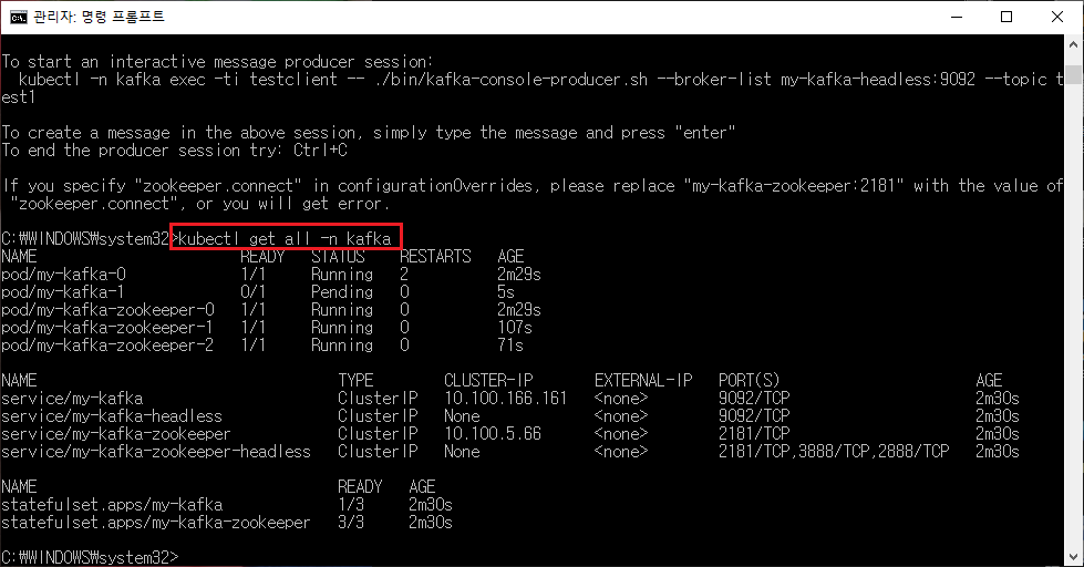 kubectl get all -n kafka