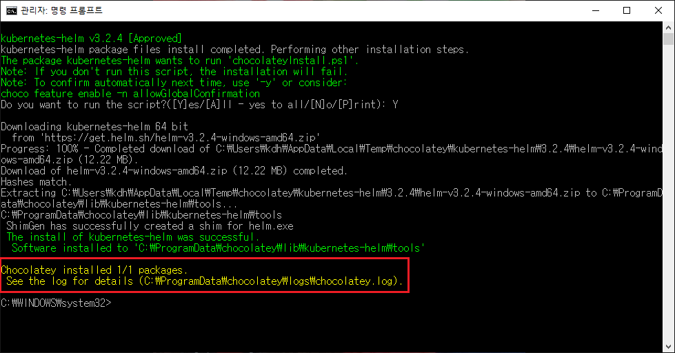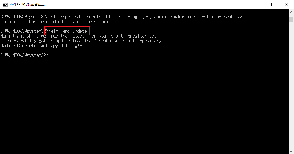 이로써 helm 설치 및 업데이트는 완료됐다.