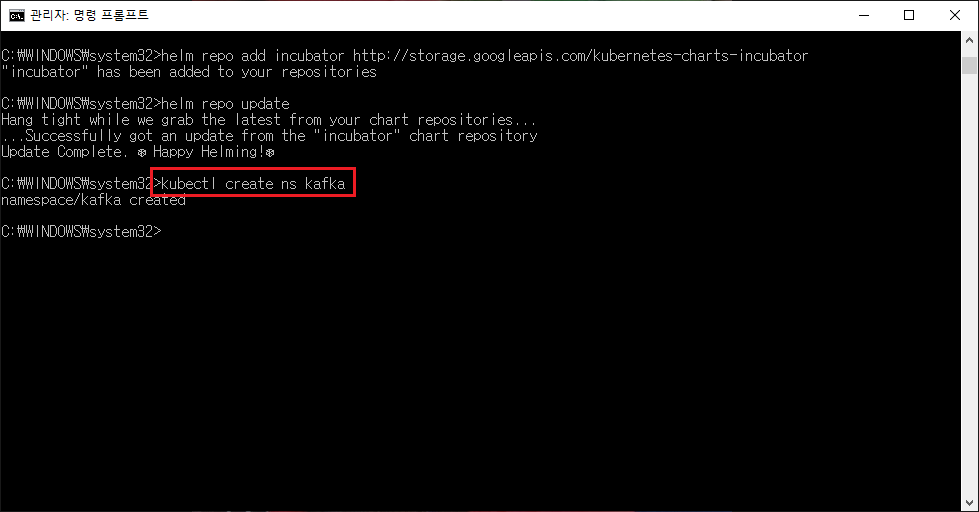 kubernetes에 kafka라는 namespace를 생성한다.
