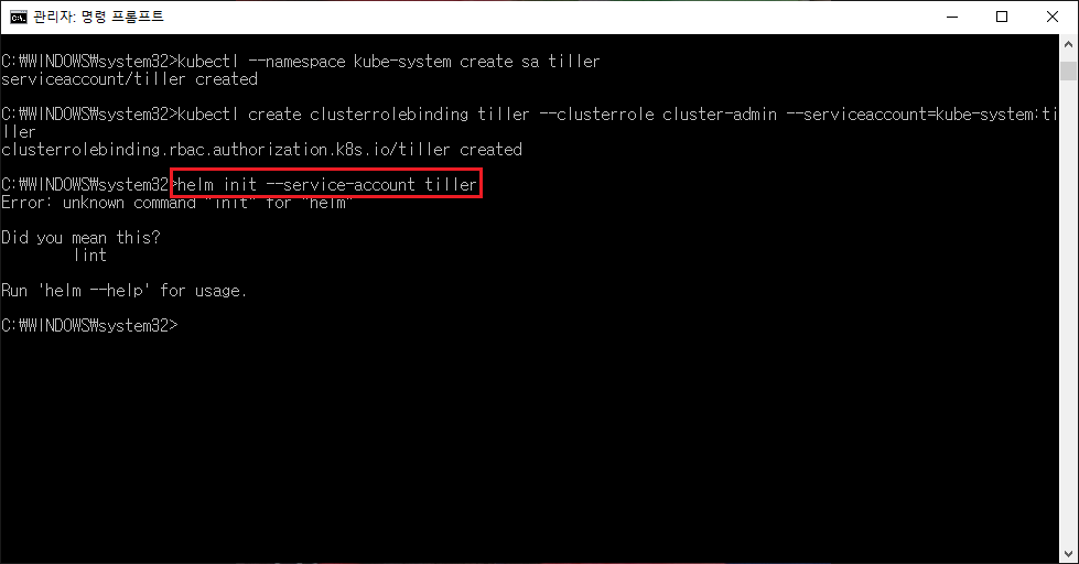 helm init --service-account tiller