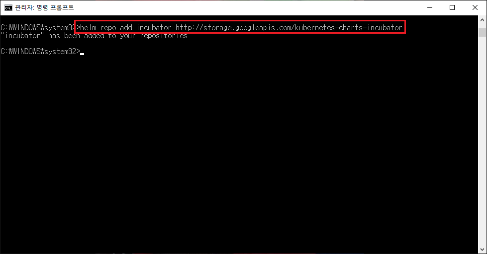 helm repo add incubator http://storage.googleapis.com/kubernetes-charts-incubator