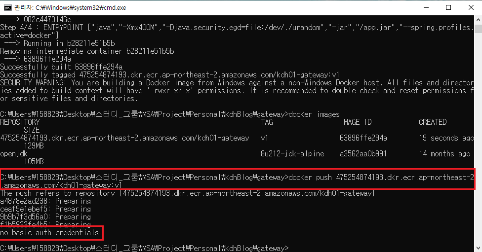ex) docker push 475254874193.dkr.ecr.ap-northeast-2.amazonaws.com/kdh01-gateway:v1