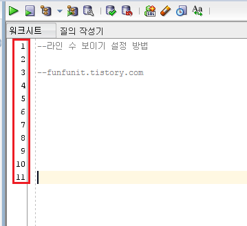SQL Developer에서 사진처럼, 라인 수를 표시하는 방법이다.