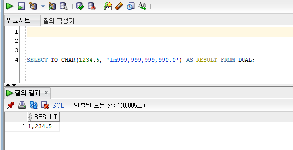 SELECT TO_CHAR(1234.5, 'fm999,999,999,990.0') AS RESULT FROM DUAL;