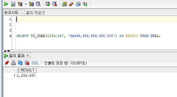 SELECT TO_CHAR(1234.567, 'fm999,999,999,990.000') AS RESULT FROM DUAL;