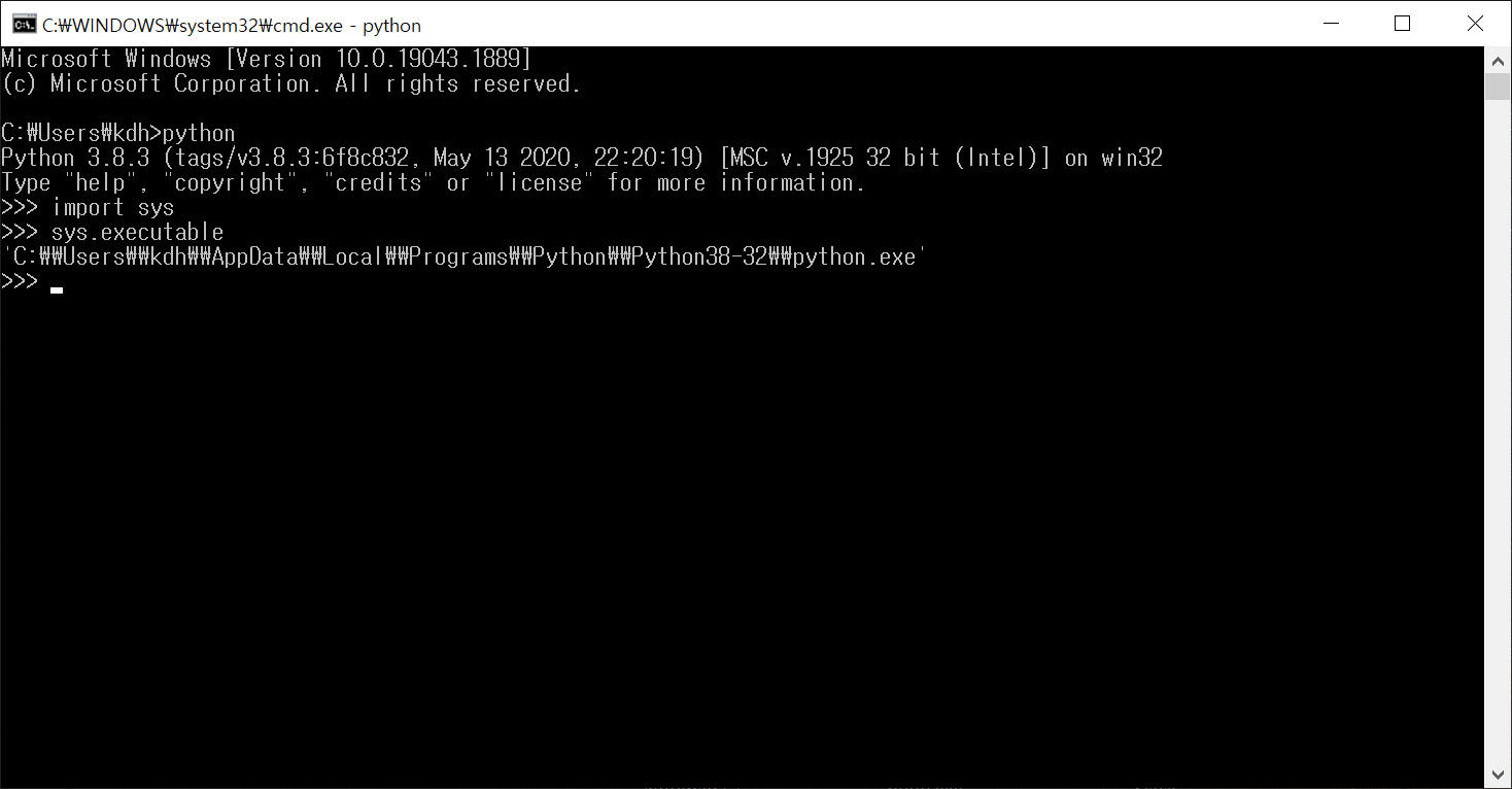 위 세 개의 명령어를 실행하면 파이썬 경로가 출력된다.