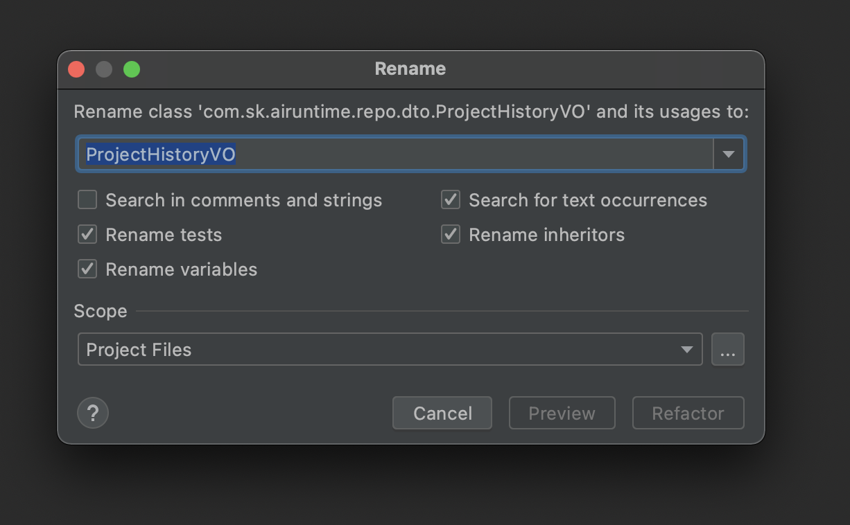 맥북 intellij에서 파일명 변경하는 방법