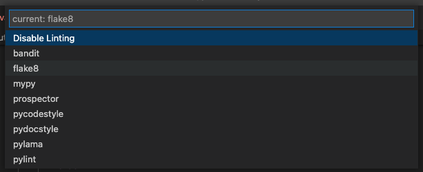 이후, 아래 항목에서 flake8 을 선택하면 실행 완료된다.