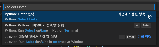 검색 창 실행 후, [select Linter] 검색 후 클릭하여 실행한다.