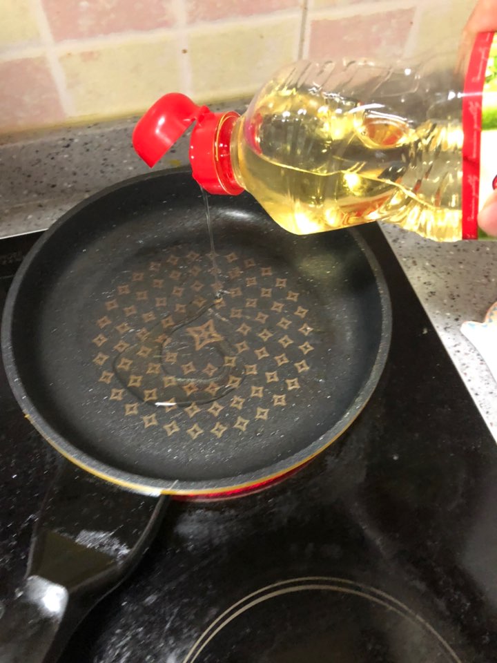 가장 먼저, 후라이팬에 기름을 두르고 적당히 데워준다.