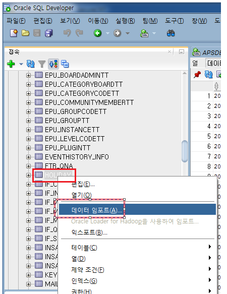 엑셀에 있는 데이터를 SQL DEVELOPER 툴 사용하여 ORACLE 테이블에 IMPORT 하기.