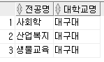대학명이 대구대이면서 전공명이 행정학인 라인을 INTERSECT