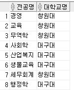 질의) 학력정보 테이블에서 대학명이 대구대인 사람의 정보와 창원대인 사람의 결과를 UNION ALL