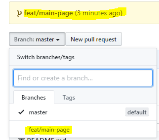 -좌측 원격 탭에서 main-page 브랜치 확인 가능