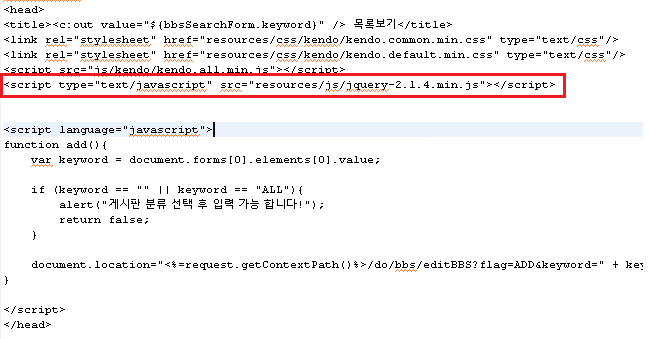 jsp 파일에 kendo UI를 적용하는 중에 다음과 같은 오류가 발견했다.