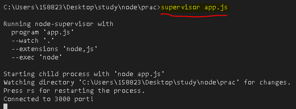 supervisor는 nodejs 파일의 변경을 탐지하여 자동으로 재시작해준다.